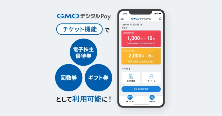 「GMOデジタルPay」において、電子株主優待券、電子回数券、電子ギフト券としても利用できる新機能「チケット機能」の提供を開始いたしました。