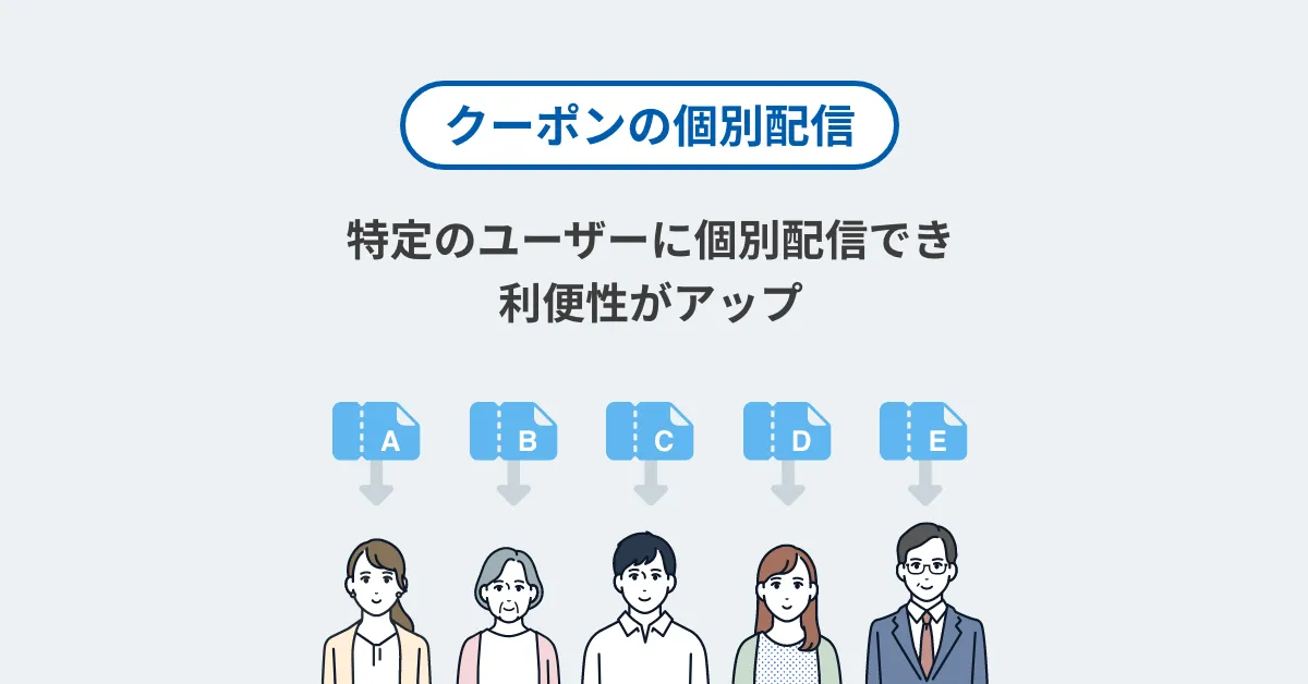 本サービスではこれまでクーポンの一斉配信のみをご利用可能でしたが、ご導入いただいております事業者や自治体の利便性向上を目的として、クーポンの個別配信機能の提供を開始いたしました。